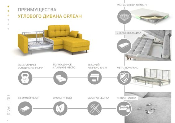 Угловой диван-кровать Орлеан (Rivalli) - за 99 723 руб. в Щелково. Купите на сайте schelkovo.onlinemarketmebeli.ru или по телефону 8(800)505-30-63 уже сегодня! Уточнить наличие, комплектацию, актуальную цену можно бесплатно у менеджера ежедневно. Закажите Угловой диван-кровать Орлеан (Rivalli) до конца акции! Доступна покупка в кредит, рассрочку. Доставим со склада или на заказ.
