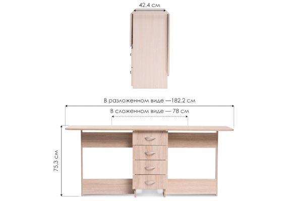 Длина разложенного столика, мм 1822
