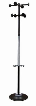 Эта элегантная напольная вешалка выполнена из оцинкованной стали с полимерным покрытием со вставкой из зеркальной нержавеющей стали. Вешалка снабжена подставкой и держателем для зонтов. Данная модель вешалки идеально вписывается в интерьер современного кабинета.