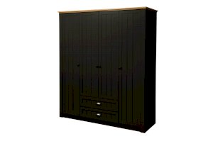 Четырехдверный шкаф с двумя выдвижными ящиками, в котором предусмотрен  полный цикл хранения вещей всех категорий! Общая ширина шкафа – 1764 мм – позволяет разместить очень многое. По центру – две распашные дверцы, которые открываются навстречу друг другу. Внутри находится отделение для вещей, которые хранятся на вешалках. Прочная металлическая штанга выдерживает вес до 20 кг. Она находится на оптимальной высоте – человеку даже с очень небольшим ростом будет легко и просто повесть свою вещь. Над металлическим подвесом располагается вместительная полка – глубиной в 600 мм, способная выдержать вес до 5 кг. Здесь можно разместить вещи, которыми мы пользуемся не так уж и часто.  Под центральным отсеком - два выдвижных ящика. Поскольку они находятся внизу, то лучше всего разместить в них коробки с обувью, но в конечном итоге – решать вам и размещать то, что необходимо – под индивидуальный запрос. По бокам – слева и справа – полки для вещей – в каждом отсеке по 5 полок. Полки выполнены из ЛДСП и выдерживают вес до 5 кг.