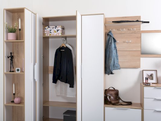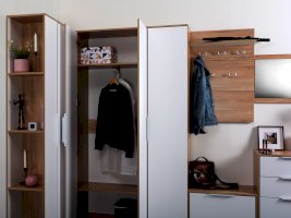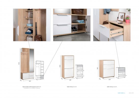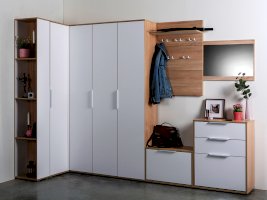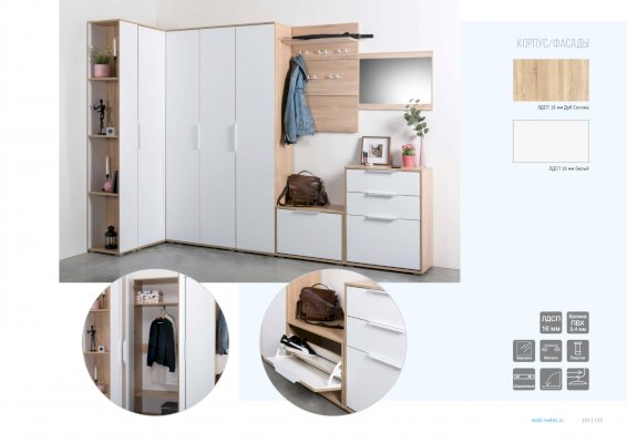 В линейке присутствуют модули с нестандартной конструкцией, которые не оставят без внимания узкие углы, повышая вместимость прихожей в разы.