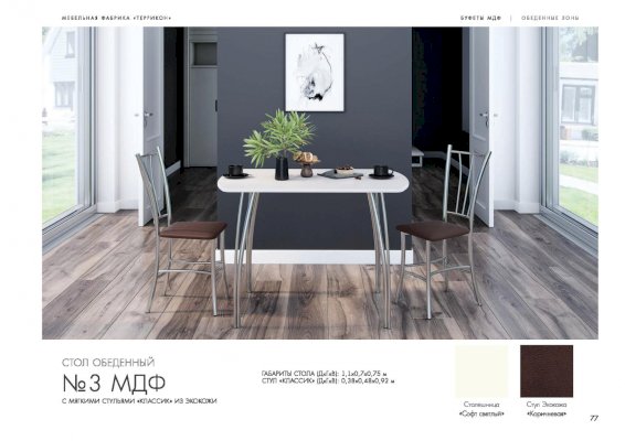 Стол обеденный №3 (Террикон) - за 9 016 руб. в Щелково. Купите на сайте schelkovo.onlinemarketmebeli.ru или по телефону 8(800)505-30-63 уже сегодня! Уточнить наличие, комплектацию, актуальную цену можно бесплатно у менеджера ежедневно. Закажите Стол обеденный №3 (Террикон) до конца акции! Доступна покупка в кредит, рассрочку. Доставим со склада или на заказ.