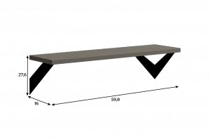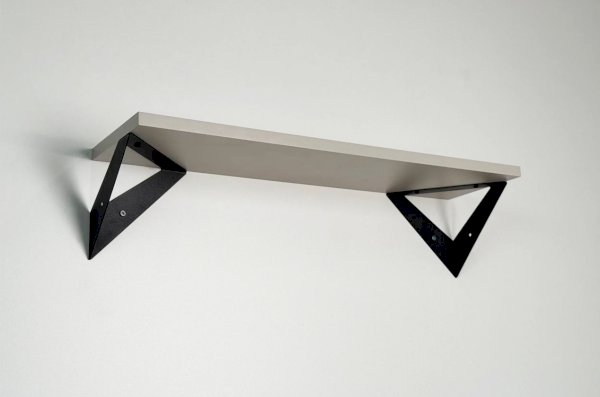 Полка крепится к стене с помощью чёрных треугольных держателей, которые обеспечивают устойчивость и долговечность. Особенность модели в том, что держатели можно расположить сверху, снизу или один сверху, другой снизу, что позволяет адаптировать полку под любые интерьерные решения и потребности.