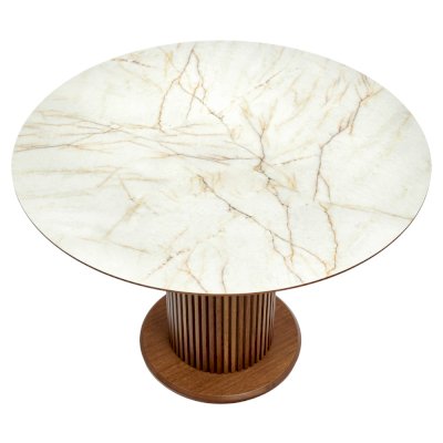 Cтол Bloom - современный обеденный стол из натурального массива бука с круглой столешницей из австрийского МДФ и HPL.