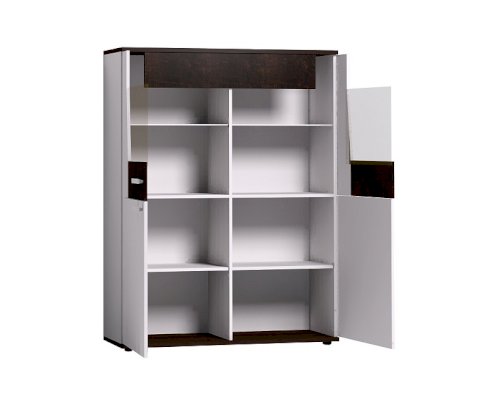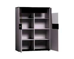 Невысокий шкаф-сервант Норвуд 22 состоит из двух частей: верхняя - витрина и нижняя- тумба за глухими фасадами. Фигурный фасад верхней витрины эффектно совмещает в себе тонированное стекло и контрастную декоративную вставку. Верхняя планка закреплена и не открывается вместе с фасадами. На стеклянных полках толщиной 6 мм можно разместить чайные сервизы, а Дополнительный модуль Норвуд 21 для Норвуд 22 будет подчеркивать всю красоту вашей посуды. Модуль Норвуд 21 докупается отдельно на ваше усмотрение.