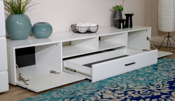 Модульная система Йорк выполнена в стиле минимализма. Строгие, лаконичные линии подчеркивают элегантность комплекта. Белый цвет мебели с деталями глубокого черного визуально сделает комнату светлее, просторнее и позволит составить безупречный по стилю комплект мебели. Сочетание глянцевой и стеклянной поверхностей, открытых полок создадут уютную обстановку и позволят украсить убранство комнаты приятными мелочами и разместить любимые книги и фото. Светодиодная подсветка придаст индивидуальность Вашей мебели. А широкая тумба для ТВ с выдвижными ящиками на телескопических направляющих позволит удобно разместить телевизор любой диагонали и другие медиаустройства Модульная система позволит подобрать по размеру вариант именно для Вашей комнаты, не оглядываясь на фиксированный размер, как в других стенках. Мебель выполнена из экологически безопасных материалов.