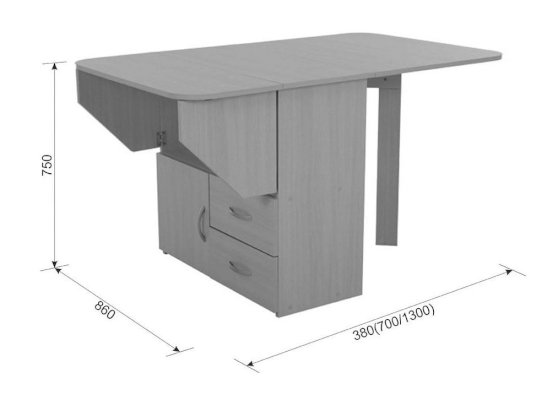 Как здорово собраться всей семьей за обедом! Есть прекрасный вариант – это «Стол-тумба». В разложенном виде за столом разместится до 4 человек. Тумба под столом позволяет хранить кухонную утварь в 2 выдвижных ящиках и шкафу.