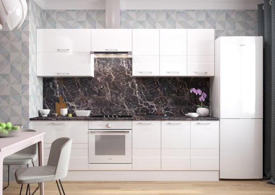 Корпус и фасад поставляются в отдельных упаковках, что дает возможность комбинировать в одной кухне разные фасады.